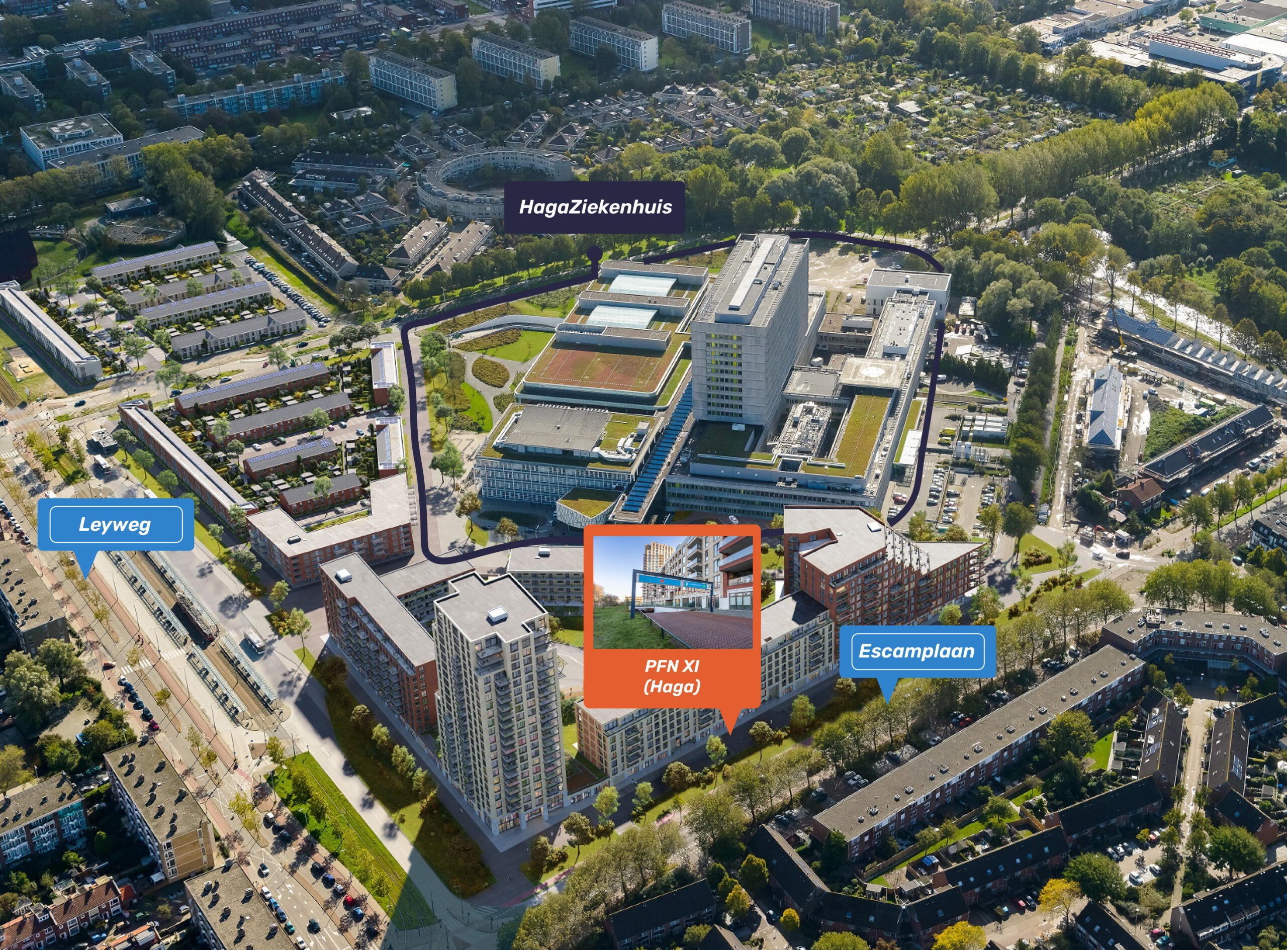 Het Object is gelegen naast het HagaZiekenhuis, in de wijk Escamp in Den Haag. Het HagaZiekenhuis is één van de grootste algemene ziekenhuizen in de regio Haaglanden en beschikt over een breed scala aan medische specialismen, waaronder een spoedeisende hulp, een operatiecomplex, het Hart- & Longcentrum, het Juliana Kinderziekenhuis en een Ronald McDonald Huis.